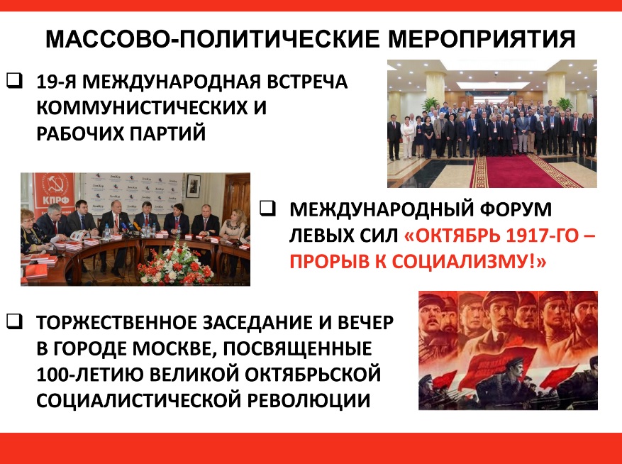 международного форума левых сил «Октябрь 1917-го – прорыв к социализму!»;