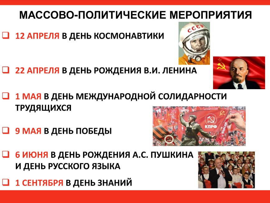 - 22 апреля в День рождения В.И. Ленина;