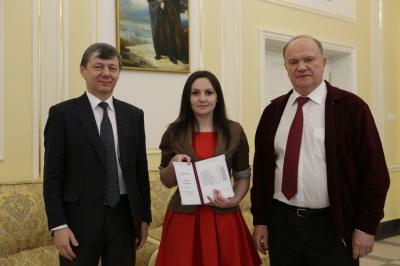 Поздравить ребят с окончанием учебы прибыл Председатель ЦК КПРФ Г.А. Зюганов. В торжественной обстановке тридцать четыре выпускника получили дипломы об успешном окончании учебы из рук лидера партии. В своем напутственном слове Геннадий Андреевич пожелал товарищам, чтобы верность светлым идеалам всегда горела в сердцах, а прохождение данных курсов послужило стимулом к достижению программных целей КПРФ. Он отметил, что в современных условиях именно образование является основным орудием в борьбе за права трудящихся.
