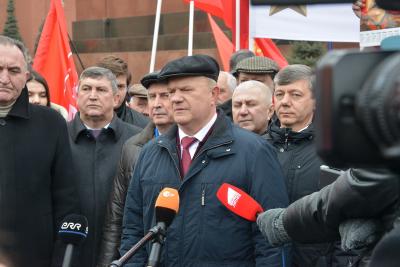 были также возложены к Мавзолею В.И. Ленина. Затем Г.А. Зюганов выступил перед
