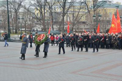 Цветы были также возложены к Могиле Неизвестного солдата у Кремлевской стены и к памятнику Маршалу Советского Союза Г.К. Жукову. В торжественных мероприятиях приняли участие Первый заместитель Председателя ЦК КПРФ И.И. Мельников, заместитель Председателя ЦК КПРФ Д.Г. Новиков, член Президиума, секретарь ЦК КПРФ С.П. Обухов, члены Президиума ЦК КПРФ Н.И. Васильев и А.Е. Клычков, секретари ЦК КПРФ П.С. Дорохин и В.Г. Соловьев, члены ЦК, МГК и МК КПРФ, депутаты Государственной Думы ФС РФ, Мосгордумы и Мособлдумы, партийный актив Москвы, Московской и Тульской областей.