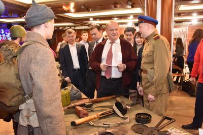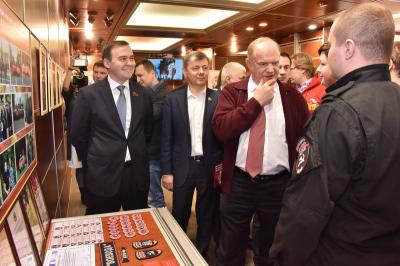 Перед началом мероприятия лидер коммунистов познакомился с представленными на нем площадками, а также дал интервью представителям СМИ.