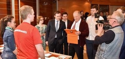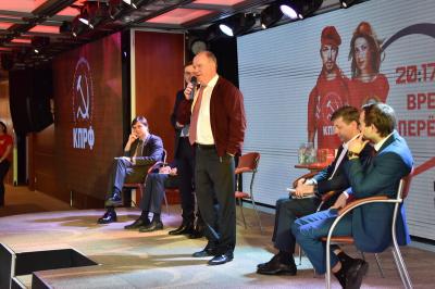 Лидер коммунистов представил присутствующих на мероприятии молодых коммунистов, возглавивших региональные отделения Компартии: Г.П. Камнев (Пензенская область), К.К. Бытдаев (Карачаево-Черкессия), А.Н. Ивачев (Свердловская область), А.Н. Долгачев (Приморский край), М.Н. Прусакова (Алтайский край), которые сегодня в своих регионах ведут большую работу по укреплению авторитета партии и защите интересов трудящихся. "Я смотрю на вас с чквством исторического оптимизма", - сказал в завершение, обращаясь к молодежи, Геннадий Андреевич.