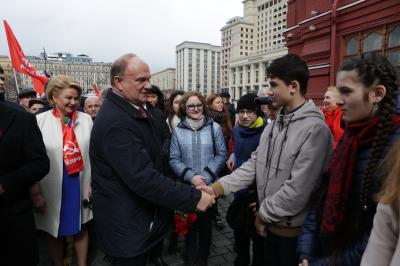 12 апреля, в День космонавтики, коммунисты и сторонники партии пришли на Красную площадь. Они возложили цветы к могилам Ю.А. Гагарина, С.П. Королева и других основоположников отечественной космонавтики. Колонну под красными флагами возглавил Председатель ЦК КПРФ Г.А. Зюганов.