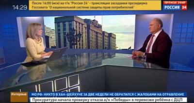 Во вторник, 18 апреля, Председатель ЦК КПРФ Г.А. Зюганов выступил в прямом эфире на телеканале "Россия 24". Главной темой обсуждения стала работа правительства Медведева.
