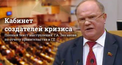Полный текст выступления Председателя ЦК КПРФ Г.А. Зюганова по отчету правительства в Государственной Думе 19 апреля 2017 г.