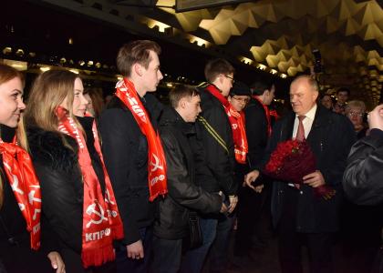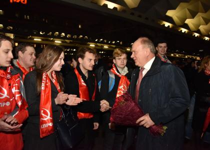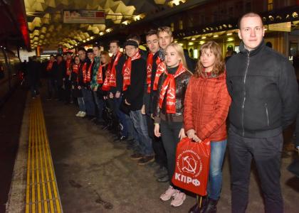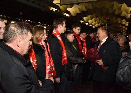вокзале лидера КПРФ встретили представители партийного актива, а также