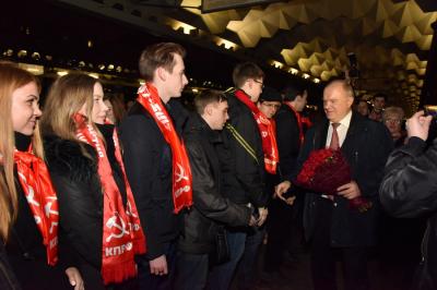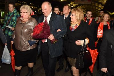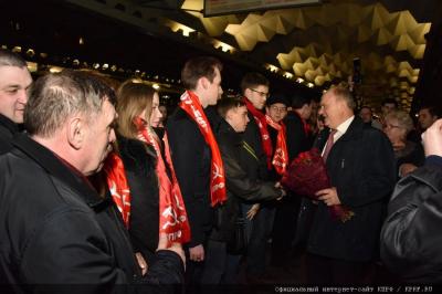 вокзале лидера КПРФ встретили представители партийного актива, а также