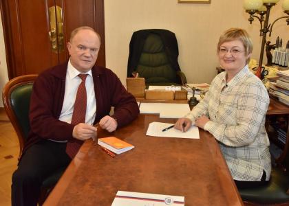 28 апреля Председатель ЦК КПРФ Г.А. Зюганов провел встречу с руководителем фракции КПРФ в Законодательной Думе Томской области Н.Г. Барышниковой.