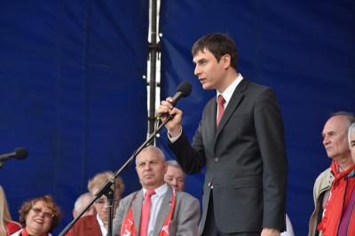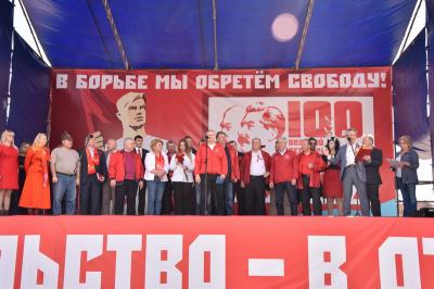 Открыл мероприятие заместитель Председателя ЦК КПРФ, первый секретарь МГК КПРФ В.Ф. Рашкин. Он напомнил лозунги солидарности трудящихся: «Власть Советам! Землю крестьянам! Требуем 8-часового рабочего дня!».
