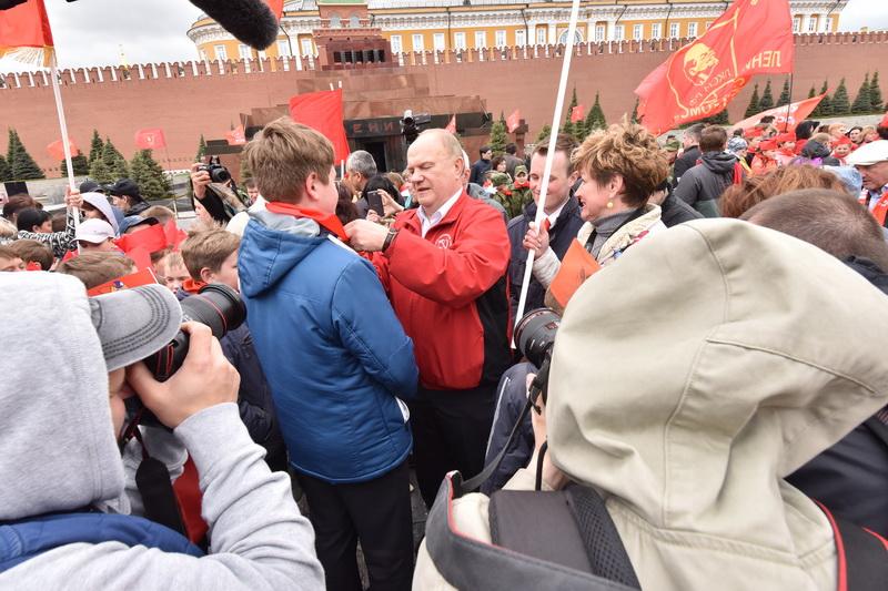 Закончилась торжественная линейка выносом пионерского знамени. Затем участники праздничных мероприятий во главе с Г.А. Зюгановым возложили цветы к Мавзолею В.И. Ленина.