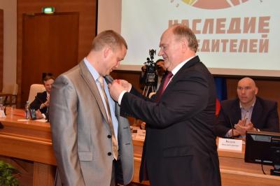 ходе торжественного мероприятия Г.А. Зюганов вручил памятные медали ЦК КПРФ к