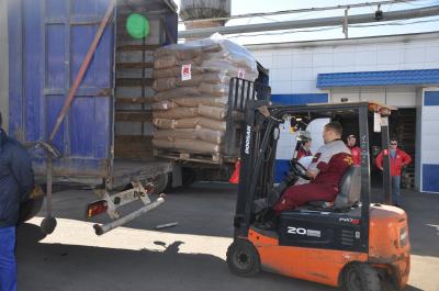 работа по загрузке трех многотонных фур, которые коммунисты снарядили самым