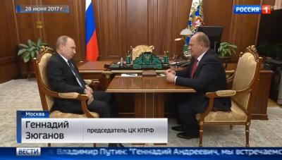 Одним из событий минувшей недели стала встреча лидера КПРФ Г.А.Зюганова с президентом страны В.В.Путиным. В одной из своих новостных программ на эту встречу откликнулся телеканал "Россия 1".