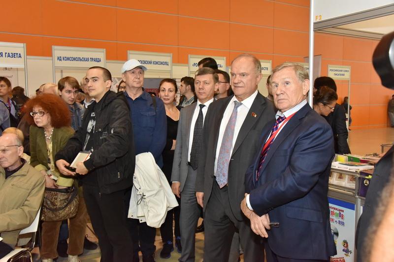 Лидер коммунистов осмотрел экспозиции выставки-ярмарки, пообщался с представителями издательств, дал интервью СМИ.