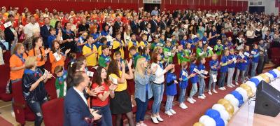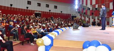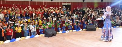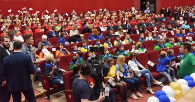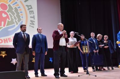 Обращаясь со сцены к детям Донбасса, лидер коммунистов высказал теплые слова и пожелания в их адрес. Он рассказал о том, что сам родился в семье потомственных учителей и с детства впитал любовь к детям, уважение к женщинам и почтение к старикам.
