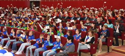 Председатель ЦК КПРФ поблагодарил всех, кто учавствовал в организации приема детей Донбасса в России, а также тех, кто продолжает оказывать помощь пострадавшим от войны регионам. Он сообщил о том, что Компартией в Новороссию был отправлен уже 65-й конвой с гуманитарным грузом. "Вы в нашем лице имеете и старшего брата, и своего помощника, и хорошего учителя, доброго наставника", - заявил Г.А. Зюганов. В завершение выступления он наградил дом отдыха "Снегири" от имени депутатов Госдумы почетной грамотой и памятной медалью.