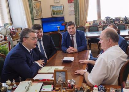 В рамках программы Дней Ставропольского края в Государственной Думе прошла рабочая встреча Г.А. Зюганова с губернатором Ставрополья В.В. Владимировым и председателя краевой Думы Г.В. Ягубовым.