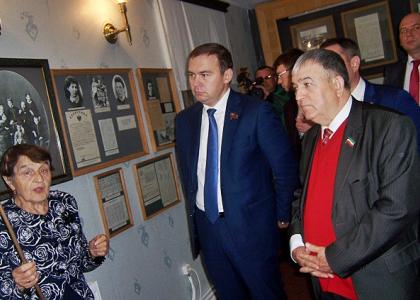 Перед началом экскурсии Юрий Вячеславович вручил памятную медаль ЦК КПРФ «100 лет Великому Октябрю» старейшему экскурсоводу Анне Ивановне Пигасовой.