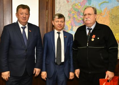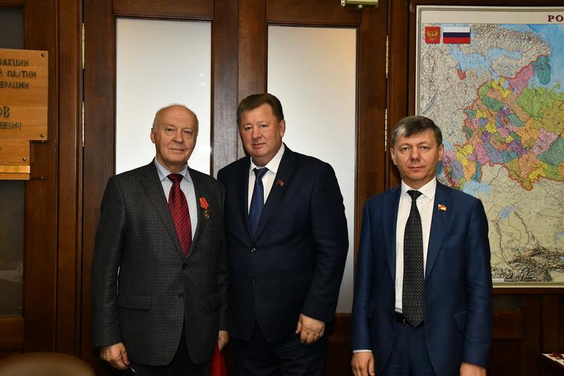 19 октября во фракции КПРФ в Государственной Думе состоялось награждение медалью ЦК КПРФ «100 лет Великого Октября» членов Фонда памяти полководцев Победы. Вручили юбилейные награды заместители Председателя ЦК КПРФ В.И. Кашин и Д.Г. Новиков.