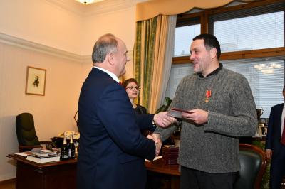 В церемонии награждения также приняли участие заместители Председателя ЦК КПРФ Д.Н. Новиков и Ю.В. Афонин, член Президиума ЦК КПРФ Н.В. Коломейцев, а также член ЦК КПРФ, депутат Госдумы А.А. Ющенко.