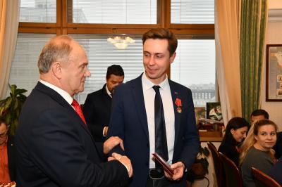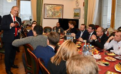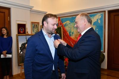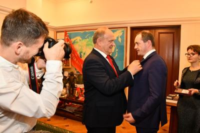 27 октября в преддверии юбилея Великого Октября Председатель ЦК КПРФ Г.А. Зюганов наградил памятной медалью «100-лет Великой Октябрьской Социалистической Революции» группу российских журналистов.