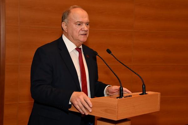 Обращаясь с приветственным словом к собравшимся, Геннадий Андреевич рассказал о прошедших в Санкт-Петербурге и Москве в рамках празднования 100-летия Великого Октября мероприятиях, в ходе которых иностранные делегации посетили исторические места, связанные с революционными событиями. В их числе он назвал Таврический и Смольный дворцы, крейсер "Аврору", московский Кремль и Красную площадь, на которой 7 ноября 1941 года, в самый тяжелый период Великой Отечественной войны, состоялся парад, ставший одним из знаковых событий на пути к Победе и красному знамени над Берлином. "Красное знамя Победы - это знамя Ленина, знамя Октября. Каждый должен помнить и чтить великие завоевания", - подчеркнул лидер коммунистов.