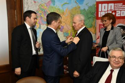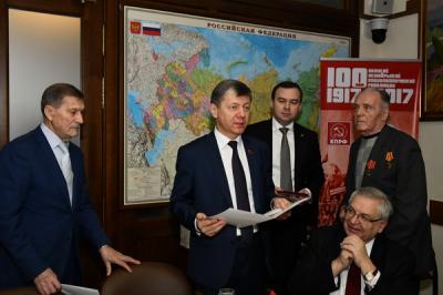 29 ноября заместители Председателя ЦК КПРФ Д.Г. Новиков и Ю.В. Афонин наградили группу ветеранов Министерства иностранных дел СССР памятными медалями ЦК КПРФ «100 лет Великой Октябрьской социалистической революции» и вручили им наборы сувенирной продукции. Д.Г. Новиков передал приветствие участникам этой встречи от лидера народно-патриотических сил России Г.А. Зюганова.