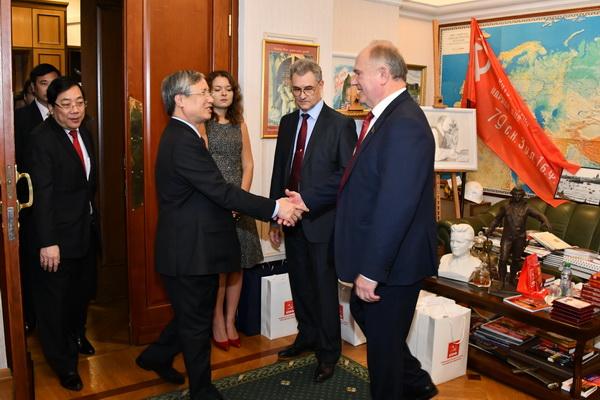 7 декабря состоялась встреча Председателя ЦК КПРФ, руководителя фракции КПРФ в Государственной Думе Г.А. Зюганова с делегацией Коммунистической партии Вьетнама во главе с членом Политбюро ЦК КПВ, Постоянным членом Секретариата ЦК КПВ, Председателем Центральной Контрольно-Ревизионной комиссии ЦК КПВ XII созыва Чан Куок Выонгом.