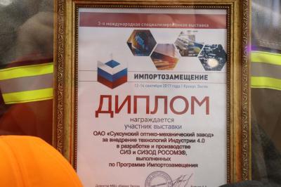 На ВДНХ проходит международная выставка «Безопасность и охрана труда». Заместитель Председателя ЦК КПРФ Ю.В. Афонин посетил стенд одного из ведущих отечественных производителей средств индивидуальной защиты – Суксунского оптико-механического завода (РОСОМЗ).