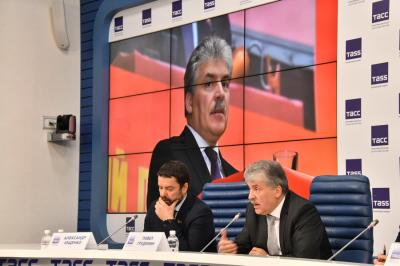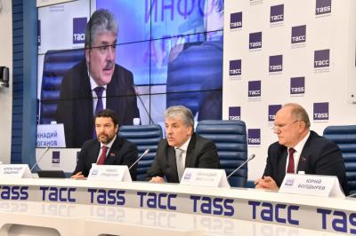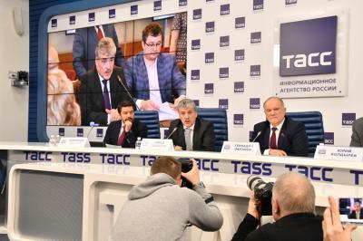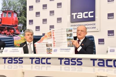 16 января в ИА ТАСС состоялась пресс-конференция кандидата на должность Президента России от Компартии и национально-патриотических сил П.Н. Грудинина. В ней приняли участие Председатель ЦК КПРФ, Руководитель избирательного штаба кандидата на должность Президента РФ Г.А. Зюганов, представитель постоянно действующего совещания Национально-патриотических сил России Ю.Ю. Болдырев и Руководитель пресс-службы ЦК КПРФ А.А. Ющенко.