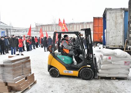 Утром 19 февраля в подмосковном Совхозе имени Ленина прошла церемония отправки на Донбасс юбилейного семидесятого гуманитарного конвоя, сформированного КПРФ. На мероприятии присутствовали кандидат в Президенты от КПРФ Павел Грудинин и Председатель ЦК КПРФ Геннадий Зюганов.