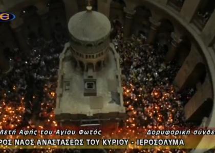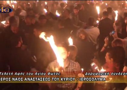 Трансляцию схождения Благодатного огня в Иерусалиме в Храме Гроба Господня, которую вел 7 апреля 2018 года греческий телеканал Е4 можно посмотреть по ссылке "Царьград ТВ"