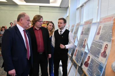 10 апреля в Государственной Думе состоялось открытие выставки, посвященной 100-летию Ленинского Комсомола: «Эпоха юности и побед». На торжественной церемонии выступил Председатель ЦК КПРФ Г.А. Зюганов.