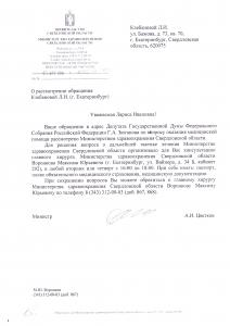 обратился к Губернатору Свердловской области Е.В. Куйвашеву с просьбой помочь