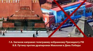 Председатель ЦК КПРФ Г.А. Зюганов направил телеграмму избранному Президенту РФ В.В. Путину против драпировки Мавзолея в День Победы 9 мая.