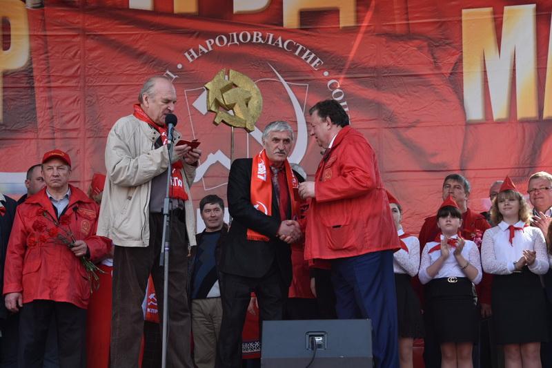 «Уважаемые друзья! Праздник всегда остается праздником, хотя порой и со слезами на глазах. Поэтому хочу еще и еще раз вас всех поздравить, пожелать здоровья, счастья, удачи, побед нашей Родине, всем нам благополучия, а нашей партии – движения вперед! Мы договорились, что не позже чем к 2022 году, к 100-летию Советского Союза, удвоим ее ряды. И я прошу наш актив, наших союзников все сделать для того, чтобы ряды Компартии удваивались и утраивались, чтобы борьба за рабочего человека, борьба за мир на всей земле была напряженной, системной, надежной! И чтобы в центре этой борьбы как всегда был наш талантливый, трудолюбивый русский народ. Многонациональный народ нашей державы. С праздником, друзья! Ура!» - так завершил свое выступление В.И. Кашин.