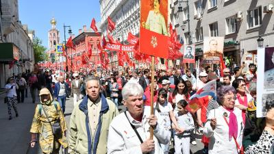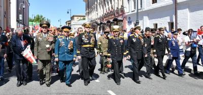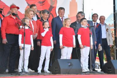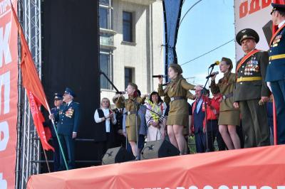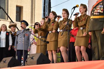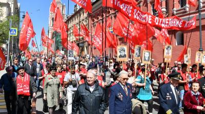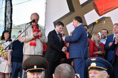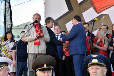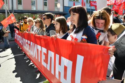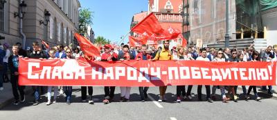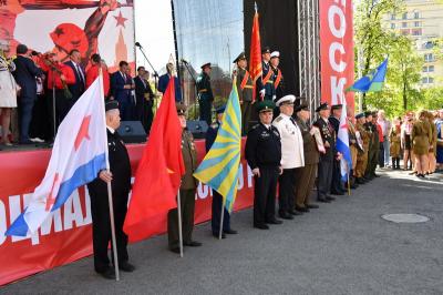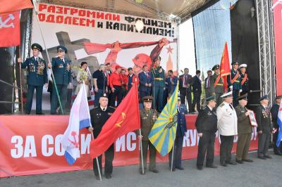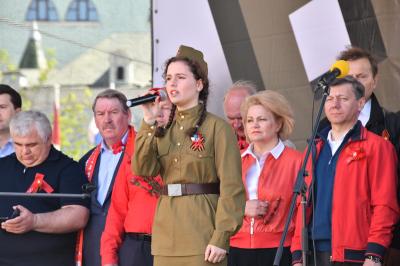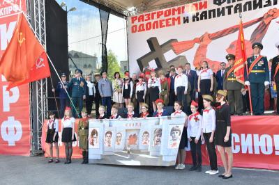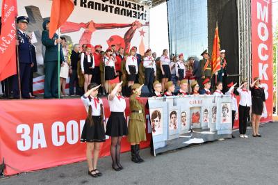 наследники Великой Победы, собрались сегодня на торжественные шествие и митинг