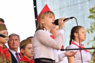этого на сцену поднялись пионеры из дружины имени Зои Космодемьянской и юные