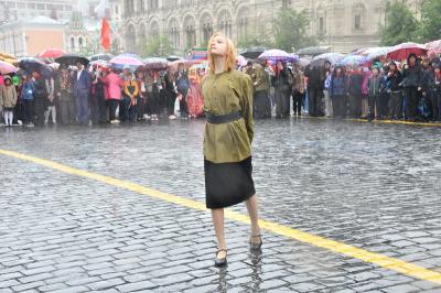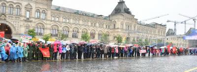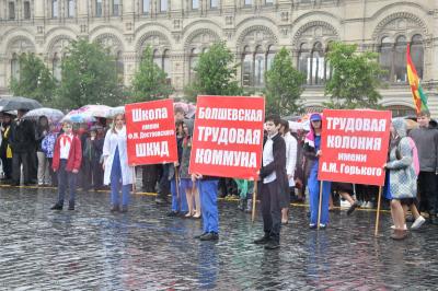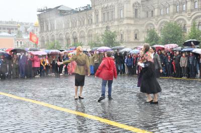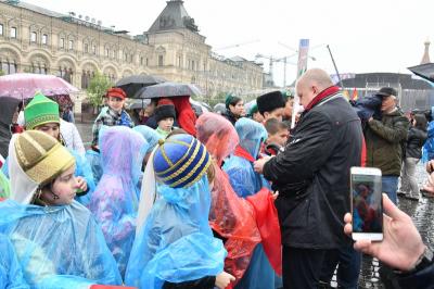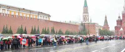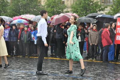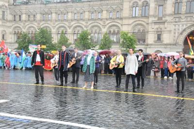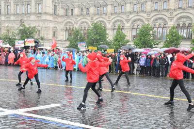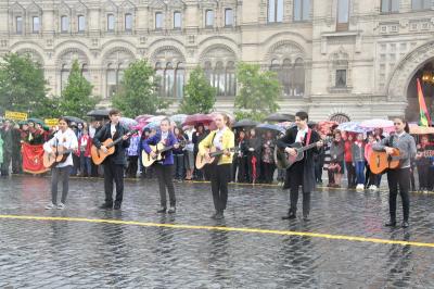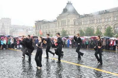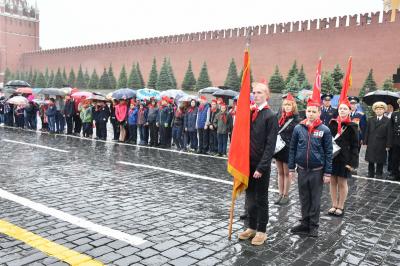 на ненастную погоду, на главной площади страны собрались пионеры из Москвы и
