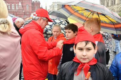подчеркнул, что сегодня ребята, вступившие в ряды пионеров на Красной площади,