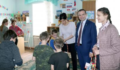 Юрий Афонин, Мария Прусакова и Вероника Лапина подарили ребятишкам игрушки и сладости, а центру – звукоусиливающую аппаратуру для проведения музыкальных мероприятий. Депутаты-коммунисты поздравили детей и пожелали им поскорее вернуться в свои семьи.