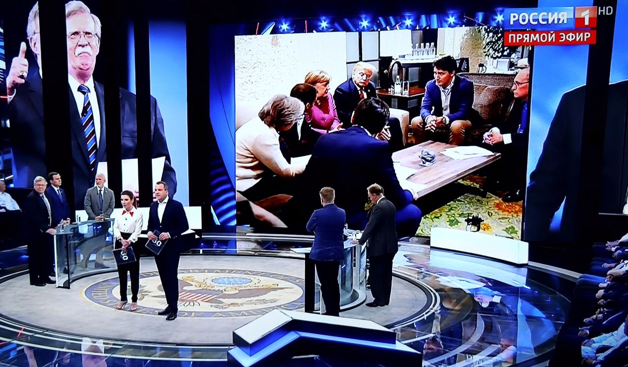 В студии обсуждались последние события в отношениях межу Россией, США, Европой и Украиной. Оппонентами выступали либеральные российские политики и украинские «политологи», которых, скорее, можно назвать пропагандистами киевского режима.