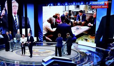 В студии обсуждались последние события в отношениях межу Россией, США, Европой и Украиной. Оппонентами выступали либеральные российские политики и украинские «политологи», которых, скорее, можно назвать пропагандистами киевского режима.