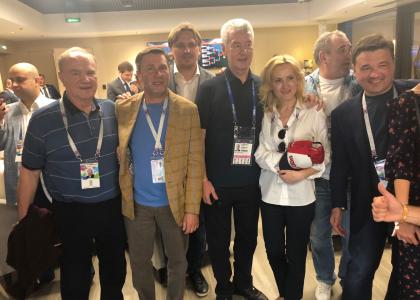В воскресенье, 1 июля, Председатель ЦК КПРФ Г.А. Зюганов посетил футбольный матч Россия-Испания, в котором наша сборная победила соперника в серии послематчевых пенальти. На игре также присутствовал руководитель пресс-службы ЦК КПРФ А.А. Ющенко.