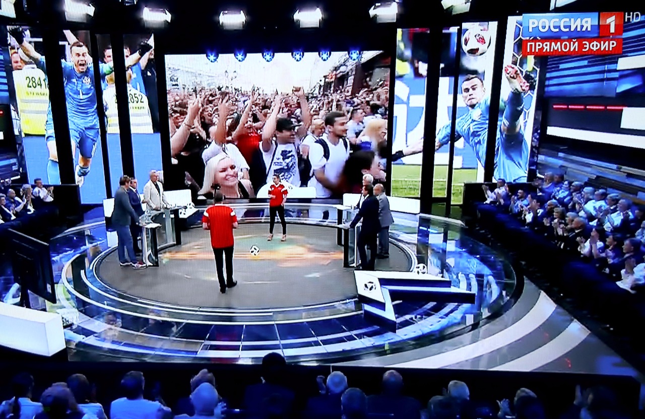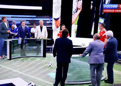 Темой обсуждения стал чемпионат мира по футболу. В дискуссии приняли участие многие известные спортсмены и спортивные журналисты.