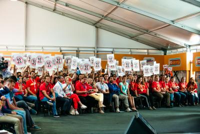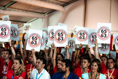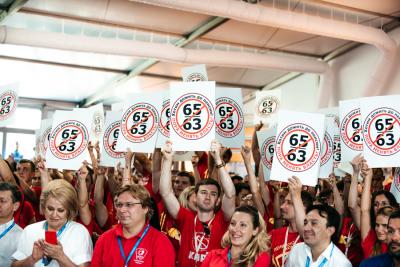 Левый сектор зала, алеющий кумачом футболок активистов ЛКСМ РФ, поддерживал Юрия Афонина, то и дело скандируя «Ленин! Партия! Комсомол!» Коммунистическая молодёжь не раз взрывалась аплодисментами во время его выступлений и реагировала неодобрительным гулом и даже топотом ног на очередной антикоммунистический выпад Жириновского или демагогическую тираду Неверова. Кстати, во время выступления последнего комсомольцы поднимали плакаты с надписью «Позор» и таблички с перечеркнутыми цифрами 63 и 65 – возраст, до которого «Единая Россия» хочет поднять выход на пенсию.