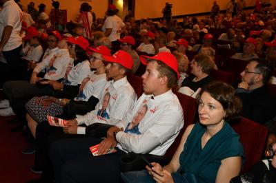 Затем состоялся просмотр предвыборных роликов кандидата, после чего слово взял Председатель ЦК КПРФ Г.А. Зюганов.