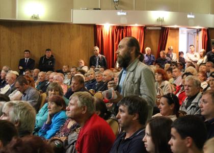 П.Н. Грудинин рассказал, что здесь, в Хакасии, живут его родственники, и поблагодарил участников встречи за доверие и поддержку на президентских выборах. Ведь даже по официальным данным за его кандидатуру в Хакасии проголосовало в полтора раза больше избирателей, чем в среднем по стране. Павел Николаевич признался, что разгромленные заводы, разбитые дороги даже в крупнейших городах республики наводят на мысль о том, что совсем недавно здесь была война. Люди страдают от бедности, отсутствия перспектив.