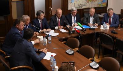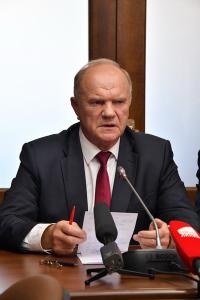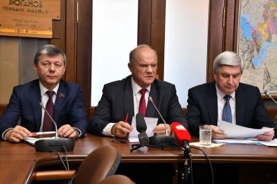 брифинге приняли участие Председатель ЦК КПРФ Г.А. Зюганов, первый заместитель